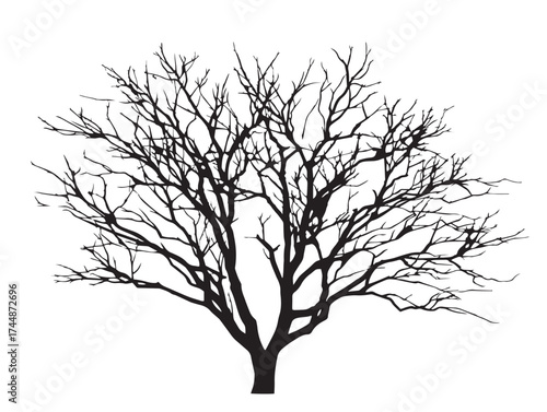 © beauti, Naklejka premium Winter Bare Branch Tree Silhouette in a Clean Vector Format