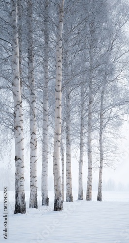 Fototapeta premium Winter birch trees in a snowy field