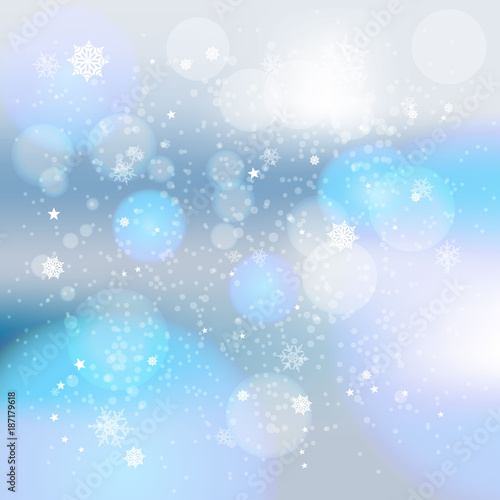 Fototapeta premium Winter blue sky with falling snow, snowflake.