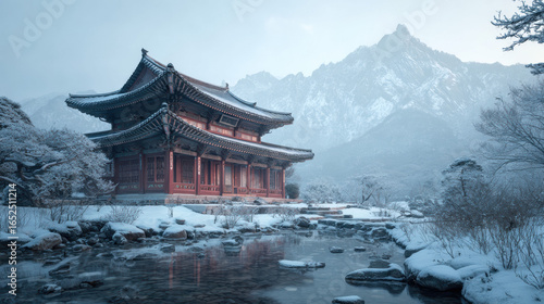 Obraz premium Winter Buddhist Temple
