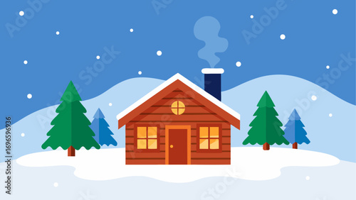 Naklejka premium Winter cabin scene with snowy landscape