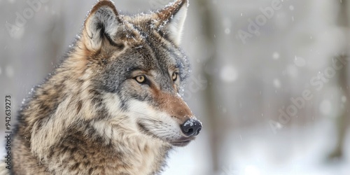 Obraz premium Winter Captive Wildlife: A Gray Wolf Staring Off into the Distance