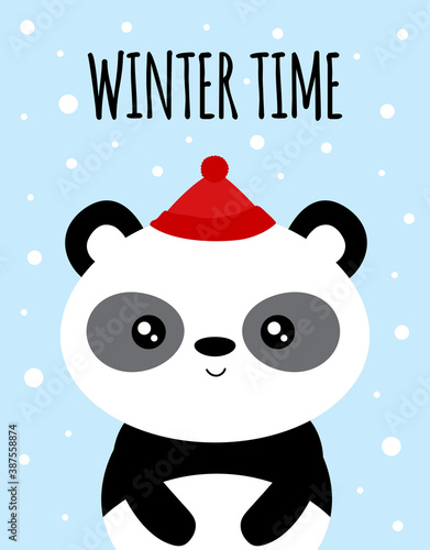 © StockVector, Fototapeta premium winter card with cute panda, vector illustration