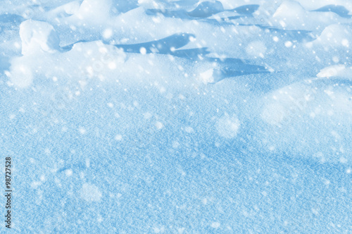 Fototapeta premium Winter christmas background with shiny snow and blizzard