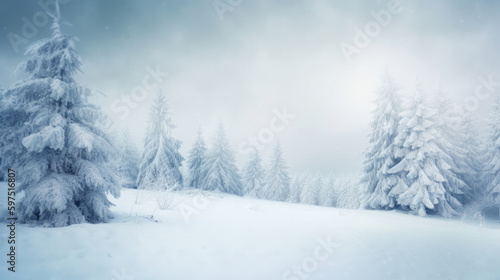 Naklejka premium Winter Christmas Forest Background. Illustration AI Generative.