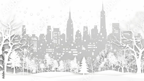 Fototapeta premium winter cityscape rendered in a monochromatic white and light gray palette,...