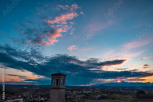 Fototapeta premium Winter colorful sunset in the countryside of Friuli-Venezia Giulia, Italy