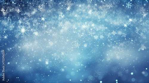 © Alina, Obraz premium Winter concept. Falling snow on blue pastel background