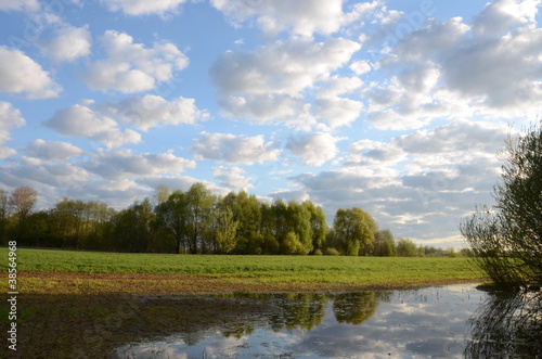 © sauletas, Fototapeta premium Winter crops plant field of spring flooding water