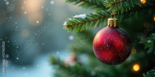 Obraz premium Winter decor ornament on Christmas tree branch, branch, green