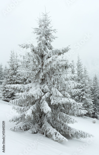 © wildman, Naklejka premium Winter dull day mountain fir trees