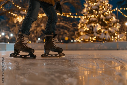 © volga, Naklejka premium Winter evening ice skating in city lights