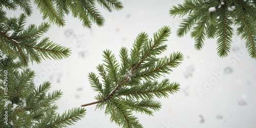 Obraz premium Winter evergreen fir branches scattered on a pristine white background ,...