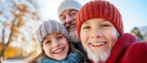 © SAchin love SAtyam, Obraz premium Winter family fun together smiling selfie