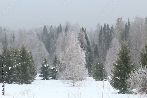 © алексей семиколенных, Fototapeta premium winter forest after snowfall in heavy fog