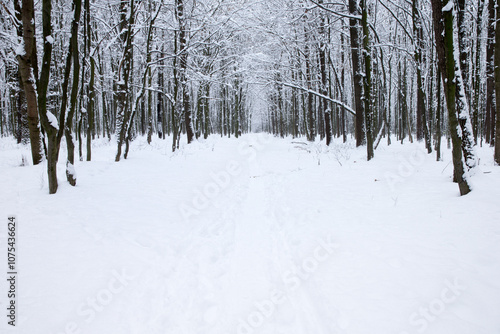 © Pakhnyushchyy, Fototapeta premium Winter forest and the road. Winter landscape. Forest landscape
