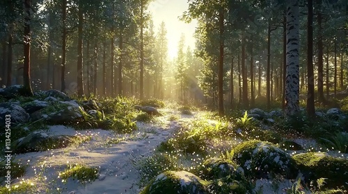 © Farkhanda, Fototapeta premium Winter forest at sunlight