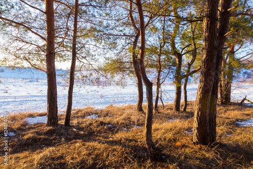 Fototapeta premium winter forest at sunlight