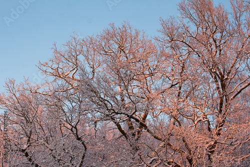 Fototapeta premium winter forest at sunset