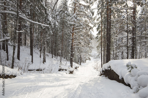 © Андрей Букреев, Fototapeta premium winter forest covered with white fluffy snow