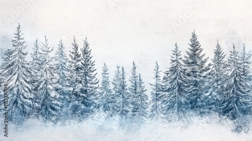 Fototapeta premium Winter forest doodle showcasing tall trees blanketed in snow under a serene...
