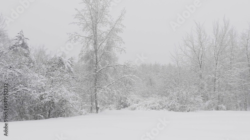 Obraz premium Winter forest during a snowfall, slow motion