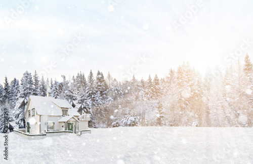 © scharfsinn86, Naklejka premium winter, forest, house