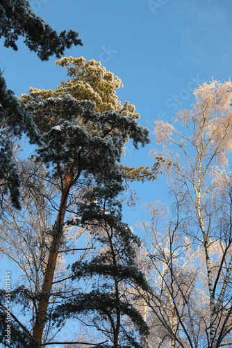 Obraz premium Winter forest in hoarfrost,