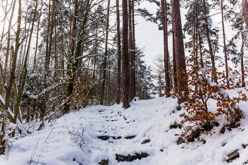 Fototapeta premium Winter forest in South Czechia near Cesky Krumlov, Europe.