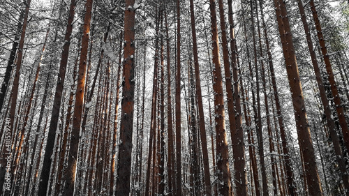 Obraz premium Winter, forest in the snow, pine trunks