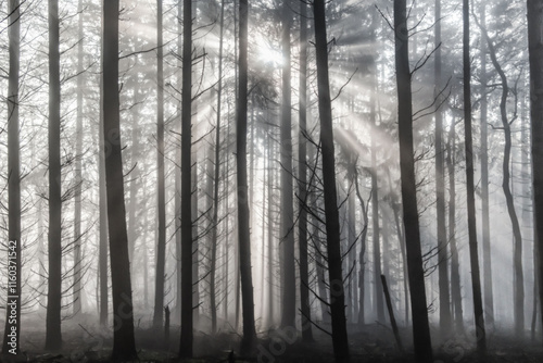 © Bram, Fototapeta premium Winter forest landscape in the fog