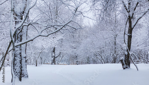 Fototapeta premium winter forest landscape with snow