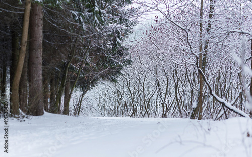 Fototapeta premium winter forest landscape with snow