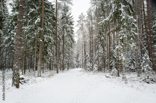Fototapeta premium winter forest landscape with snow