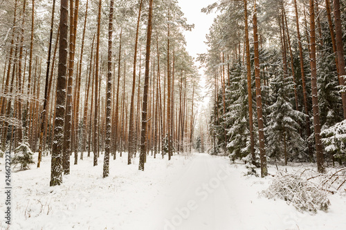 Fototapeta premium winter forest landscape with snow