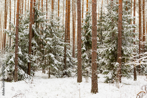 Fototapeta premium winter forest landscape with snow