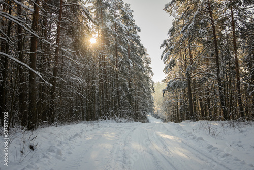 Fototapeta premium winter forest landscape with snow