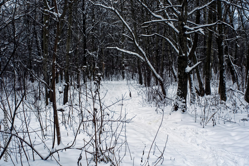 © moskvich1977, Fototapeta premium winter forest on a cloudy day