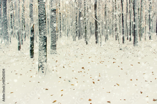 Fototapeta premium Winter forest on sun