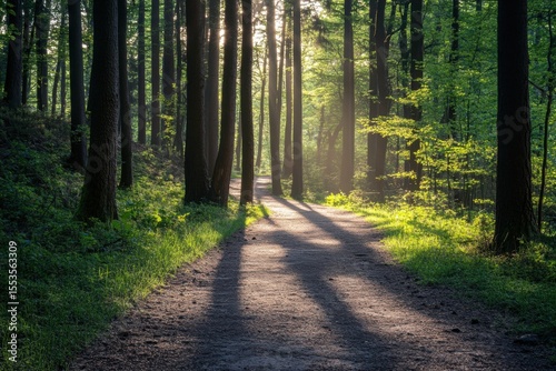 © Dimass, Obraz premium Winter forest path with blue sky above