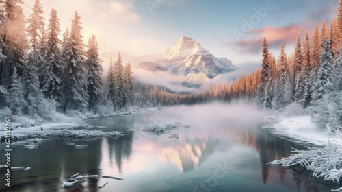 Fototapeta premium Winter forest reflected in water.