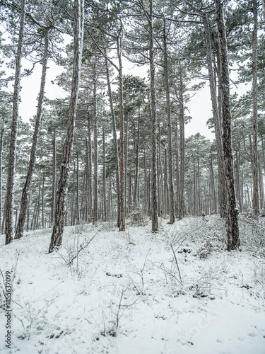 © babaroga, Fototapeta premium winter forest, white forest flor covered with snow