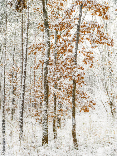© babaroga, Fototapeta premium winter forest, white forest flor covered with snow