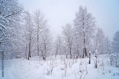 © Vira, Fototapeta premium Winter forest with fluffy snow lying on the firs and tree branches on a frosty sunny day