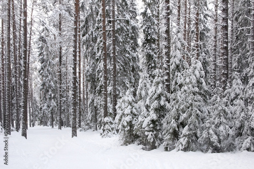© yos_moes, Fototapeta premium Winter forest with ski track