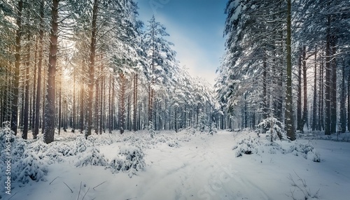 © MSohail, Fototapeta premium Winter forest with snow-covered ground