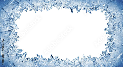 Fototapeta premium Winter frost ice crystals jagged frame on a transparent background, PNG...