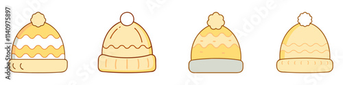 Fototapeta premium Winter hats. Stylish and cozy winter hats with playful pompoms. Vector illustration