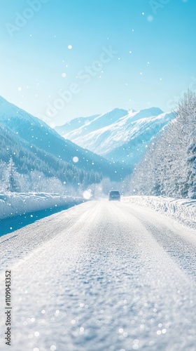 Obraz premium Winter highway in alpine mountains with snowcovered peaks