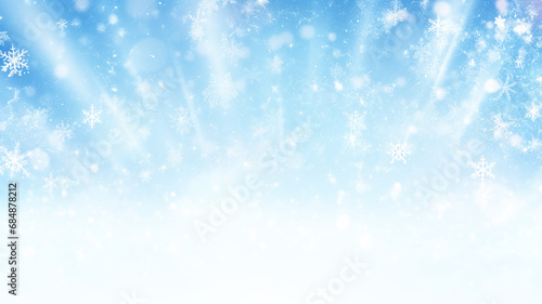Fototapeta premium winter holiday background with snowflakes, abstract blue blurred in motion, light rays of light on blue, christmas form